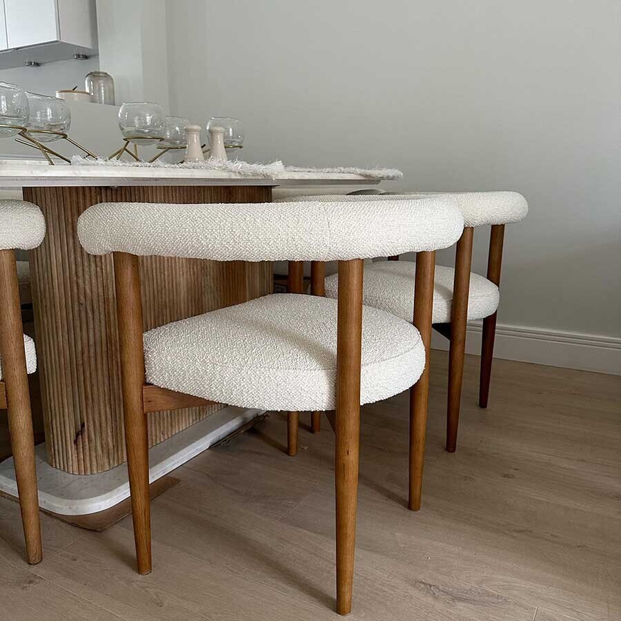 Contemporary and cute, the Anouk Armchair looks soft and comfortable, a versatile style that will fit into a variety of dining rooms and interior settings. The slim wooden frame holds up the gorgeous and on trend boucle seat and armrest, in a delicate and soft white shade. The Anouk Armchair is the perfect seat for impressing guests.