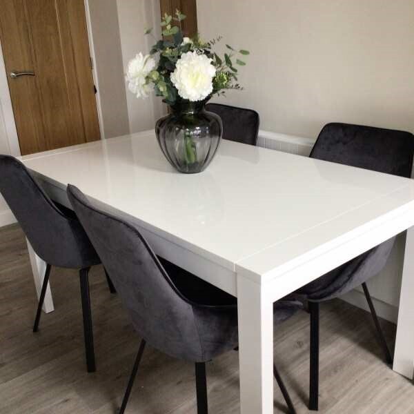 Wrapped in sumptuous grey velvet, the Beckton Dining Chair brings an elevated, glamorous touch to any dining space. The fixed foam seat cushion offers long-lasting comfort and support, holding its shape through daily use, perfect for both everyday dining and special occasions.