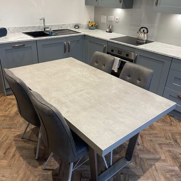 The Holm Grey Faux Leather Stitched Dining Chair harmonizes modern elegance and comfort. Its plush, padded seat and tufted backrest, wrapped in sleek grey PU leather, evoke sophistication with effortless grace. Black metal legs, adorned with distinctive criss-cross detailing, provide both strength and artistic flair. Ideal for intimate meals or grand gatherings, this chair blends durability with design, elevating every dining moment into an experience of refined beauty