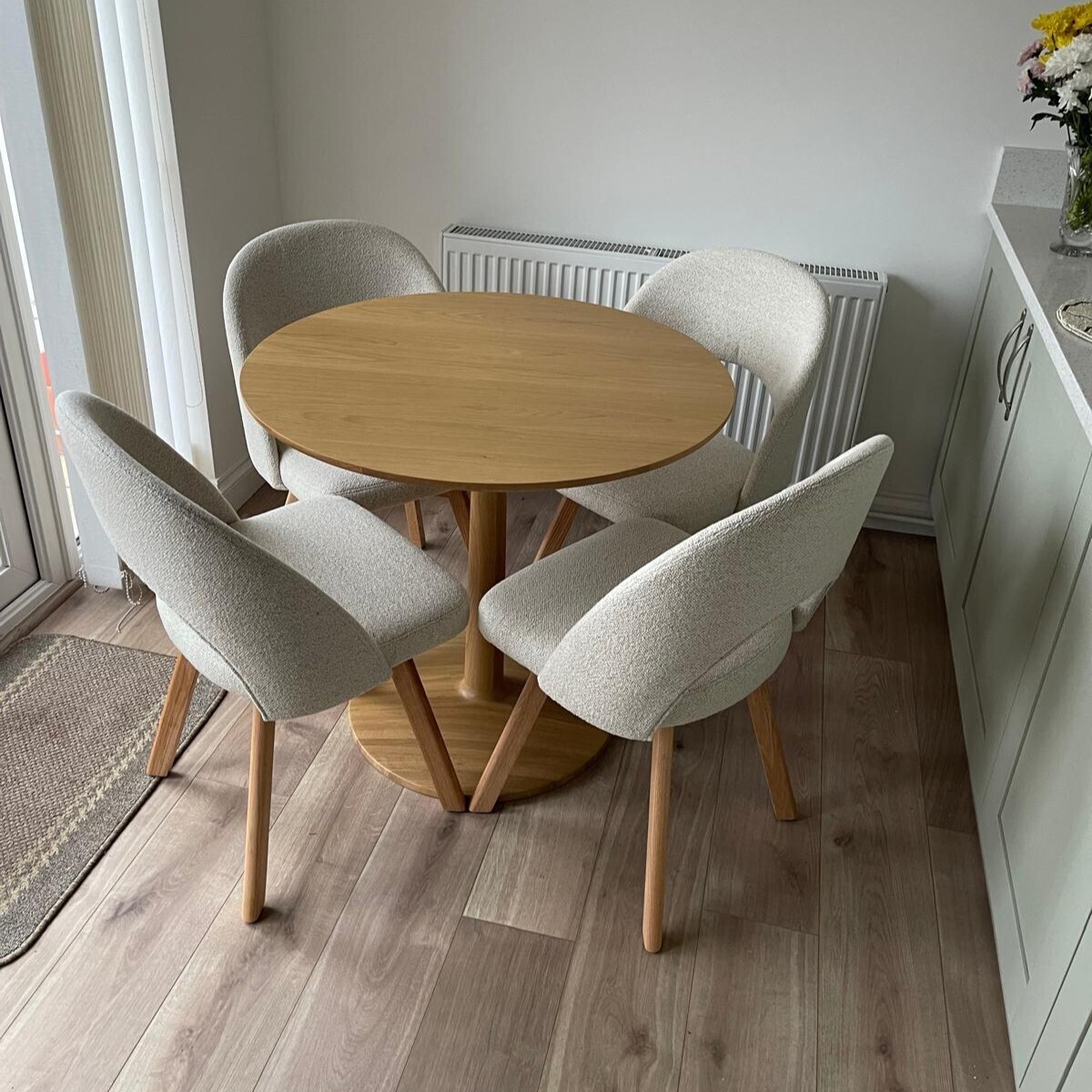 Solid oak legs bring natural warmth and timeless appeal, grounding the chair in quality and style. Strong, durable, and beautifully textured, the wooden legs enhance the overall design while ensuring the chair stays sturdy through daily use. It’s a piece that elevates your dining space with lasting elegance.