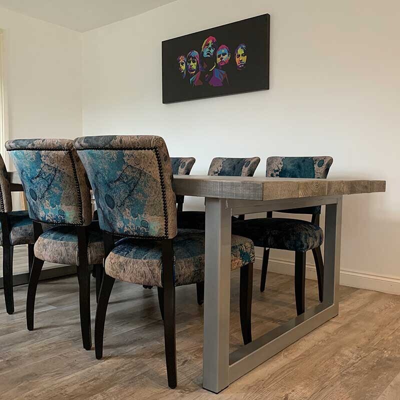 Timothy Oulton Mimi Blue Velvet Dining Chair with Black Wooden Legs , FD Melting Paisley and Black