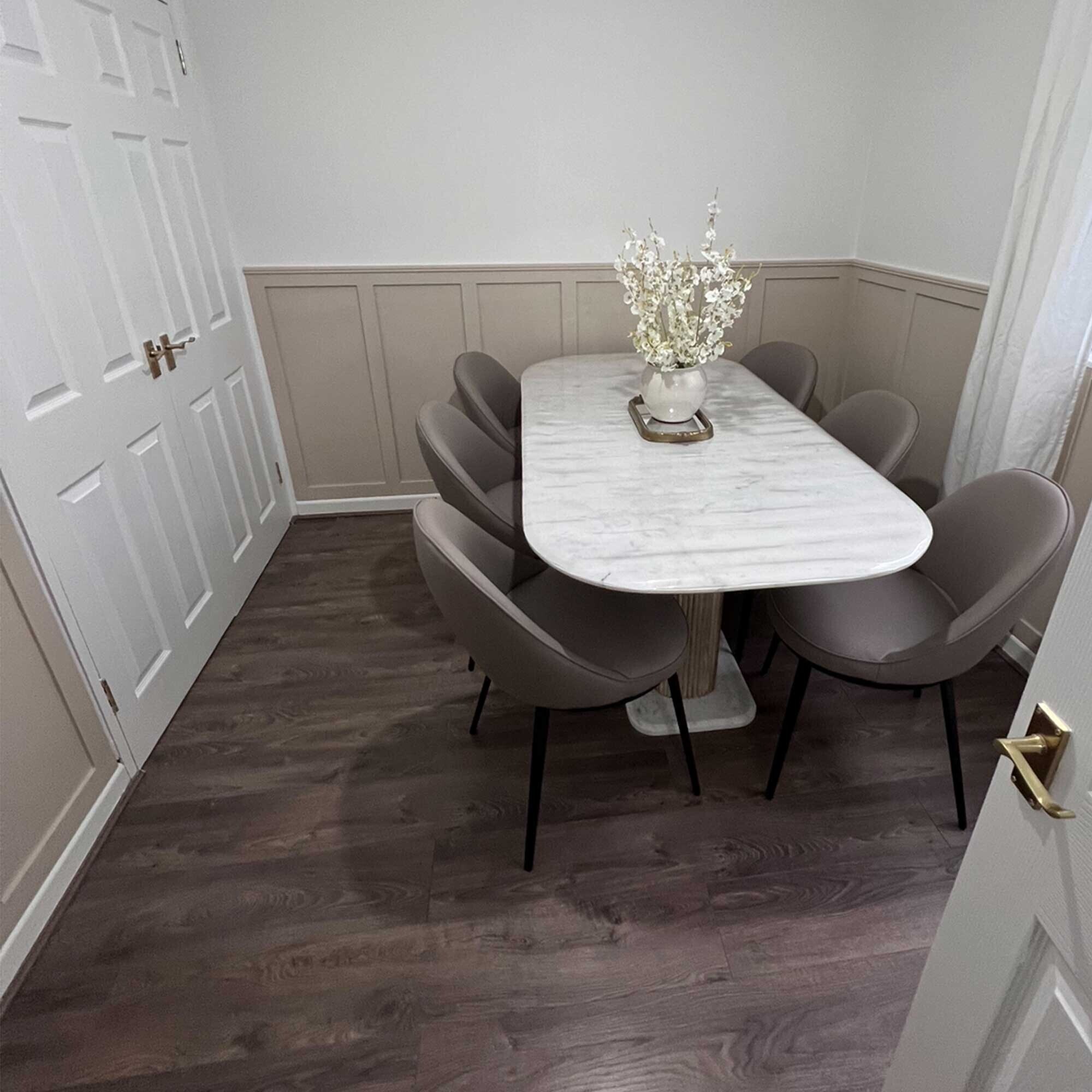 A supremely supportive seat for savouring mealtimes,the Quebec dining chair looks great in a wide range of interior schemes. Finished in a cosy taupe colour, the faux leather upholstery offers a smooth and practical touch, while striking black metal legs add a contemporary twist. Complete with a curved backrest, this comfortable faux leather dining chair is sure to come in handy around the clock.