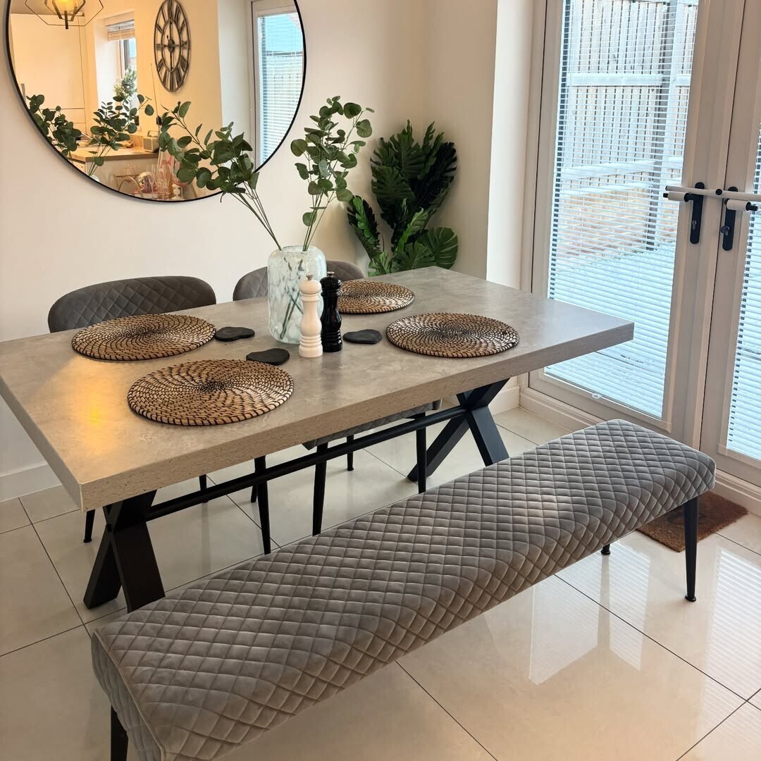 Effortlessly elegant, the Rivington Grey Velvet Quilted Dining Chair adds a touch of understated luxury to any dining space. Upholstered in soft, slate-grey velvet, it offers a smooth, tactile finish with a subtle sheen. The quilted backrest introduces refined texture and tailored detail, while the generously padded seat ensures lasting comfort. Sleek metal legs provide a contemporary edge, perfectly balancing the chair’s plush aesthetic with modern sophistication. Whether paired with a statement dining table or used as an accent piece, this chair combines comfort, style, and versatility for both everyday dining and special occasions.