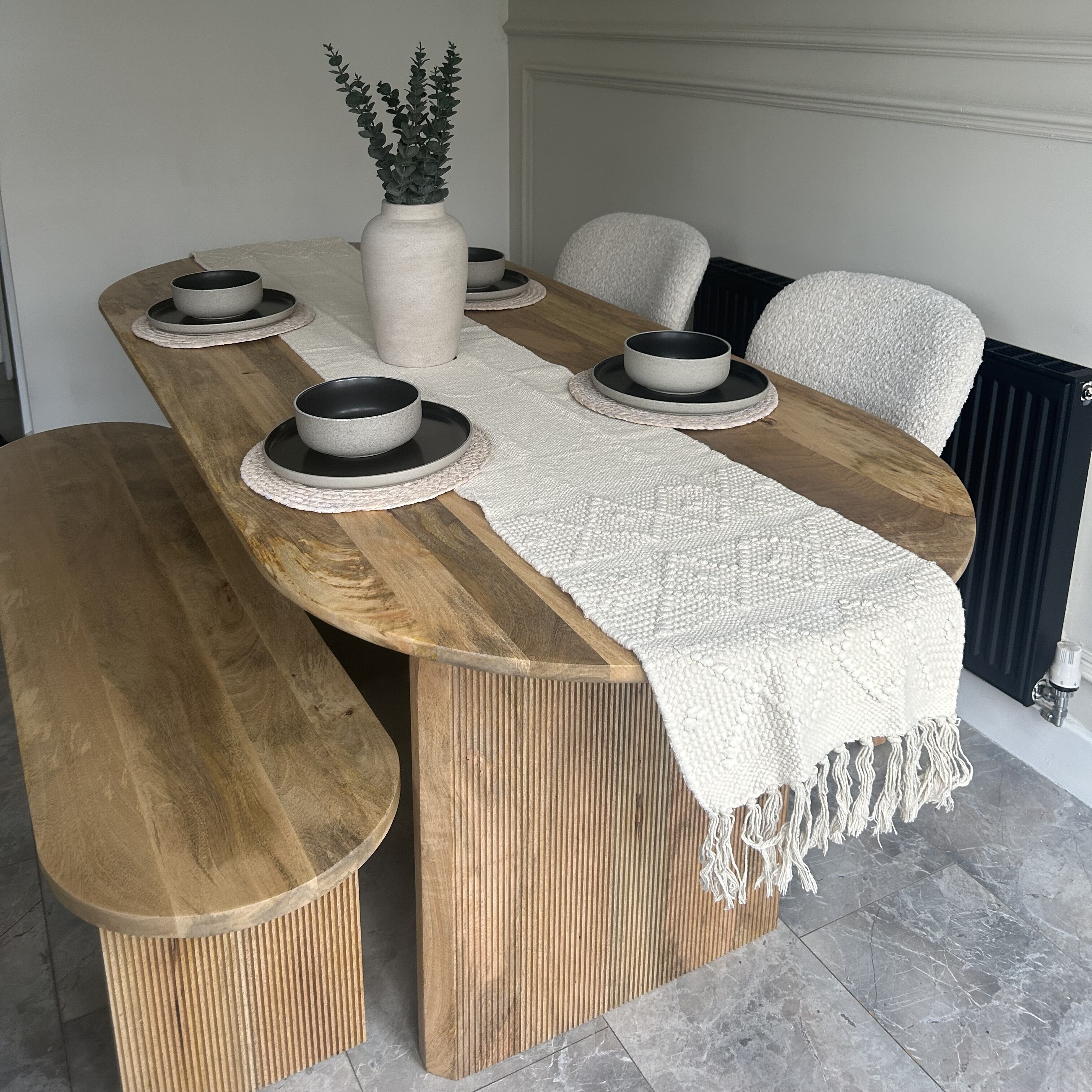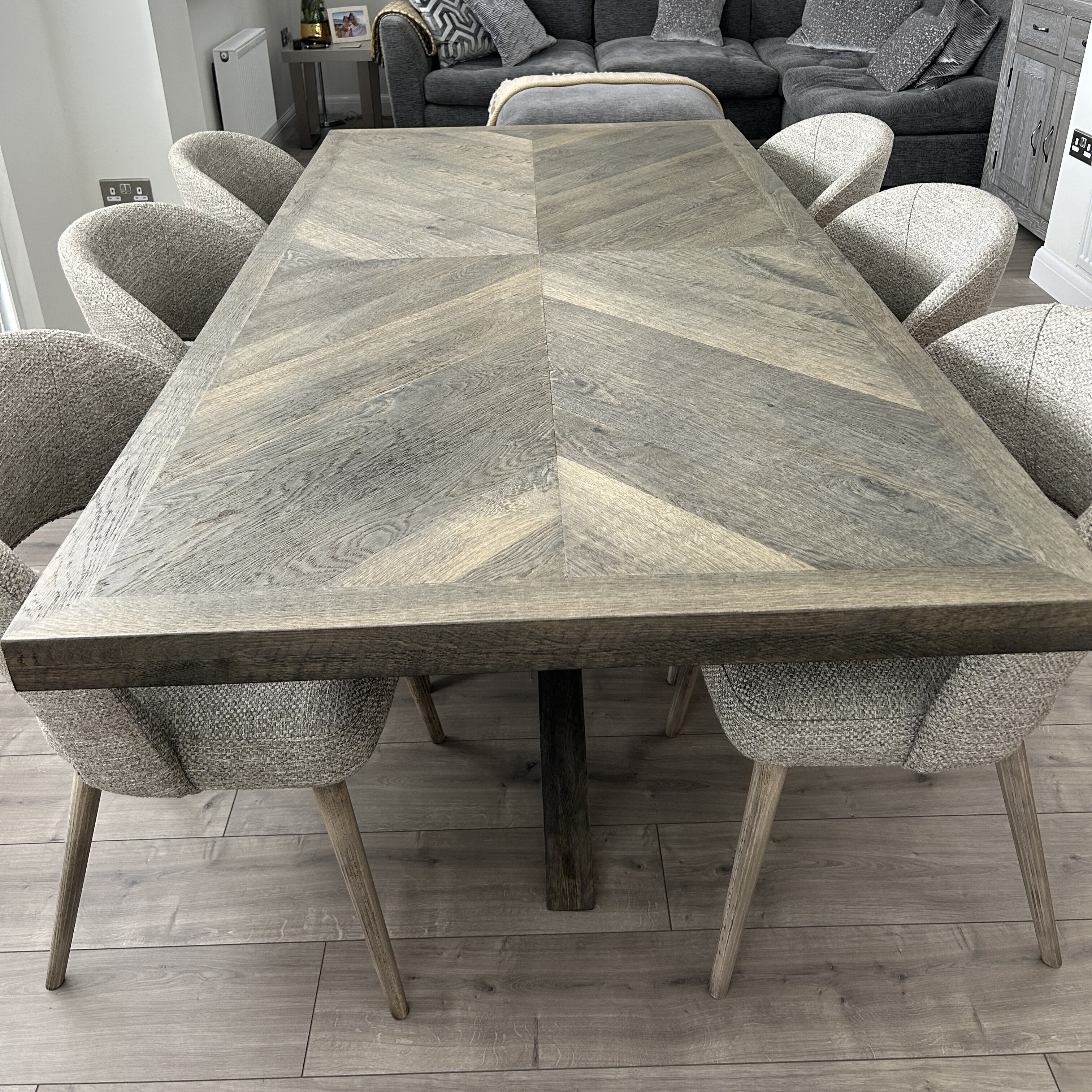 The quality of the dining table is absolutely fantastic. We are so pleased we purchased from Barker and Stonehouse. The all round service received was world class. We ordered online from the photos and description and reviews. The communication was excellent. The time slot offered suited us perfectly. The delivery team of Thomas and Craig were fantastic. A call from them giving 30 mins notice and their subsequent service in ensuring all care was taken not to damage both the table and the surrounding area whilst they positioned and assembled the table was excellent .