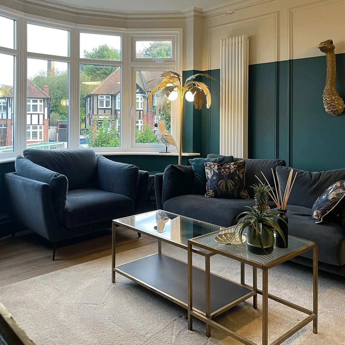 Boone Velvet 3 Seater Sofa , Blue with Black Metal Legs