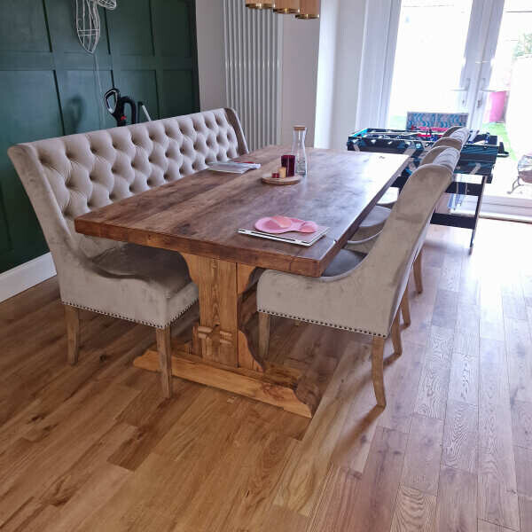 The Covington Dining Table is crafted from reclaimed and aged conifer timber, showcasing the natural beauty of repurposed wood. This type of wood is typically stronger due to its age and denser fibres, plus its better for the planet!