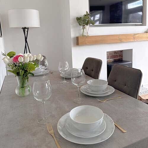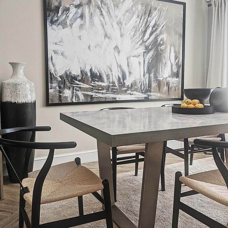 Halmstad Concrete Effect 200cm Dining Table, Seats 4-6 , Concrete Look Finish and Stainless Steel Legs