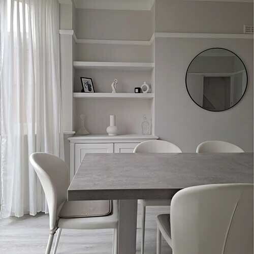 Combining style with practicality, the Halmstad Dining Table effortlessly adds industrial charm to your dining space. Its robust brushed stainless steel legs provide stability and a contemporary appearance, harmonizing with the engineered wood tabletop finished in melamine concrete for lasting durability and easy upkeep. A tasteful and functional selection for your dining area.