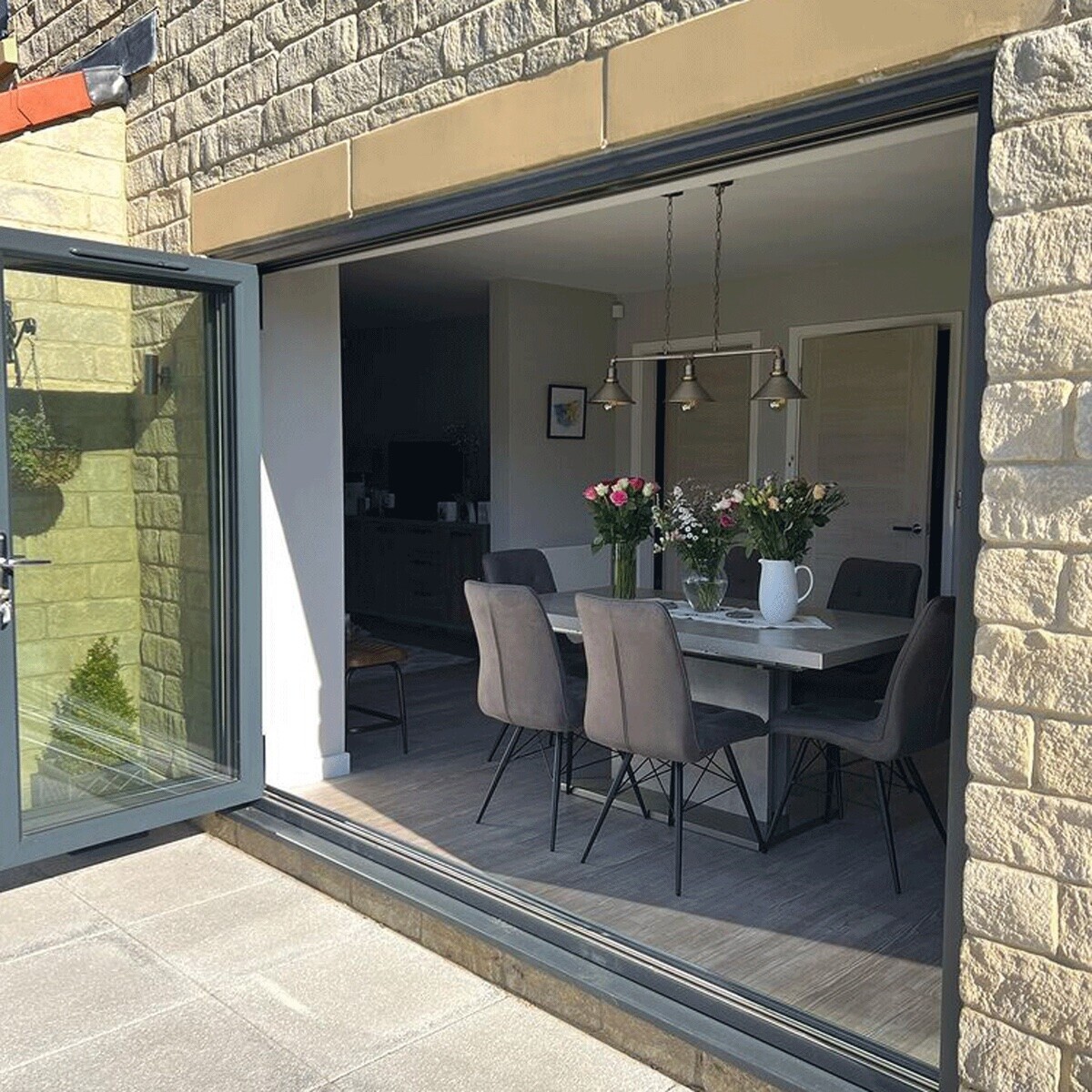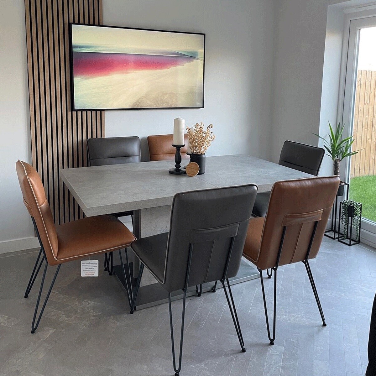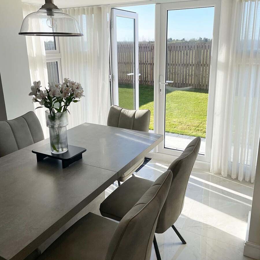 Halmstad Concrete Effect Extending 160-220cm Dining Table, Seats 6-8 , Concrete Look Finish and Stainless Steel Legs