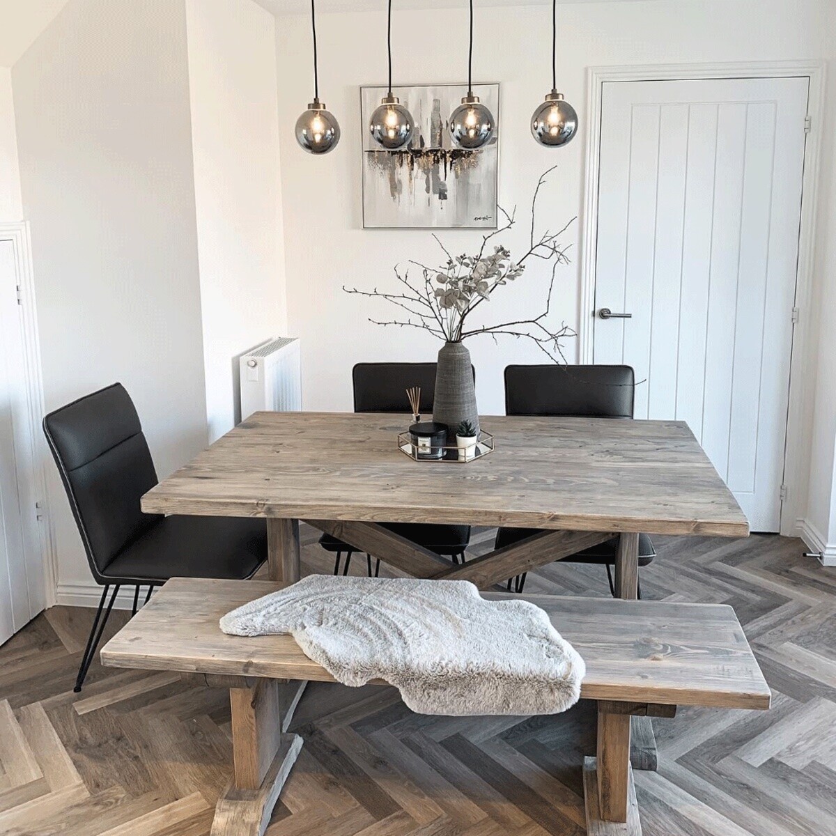 The Newsham dining table blends rustic charm with everyday function. Its generous size makes it perfect for family meals and casual gatherings, while the grey wax-coated base adds a soft, earthy finish.